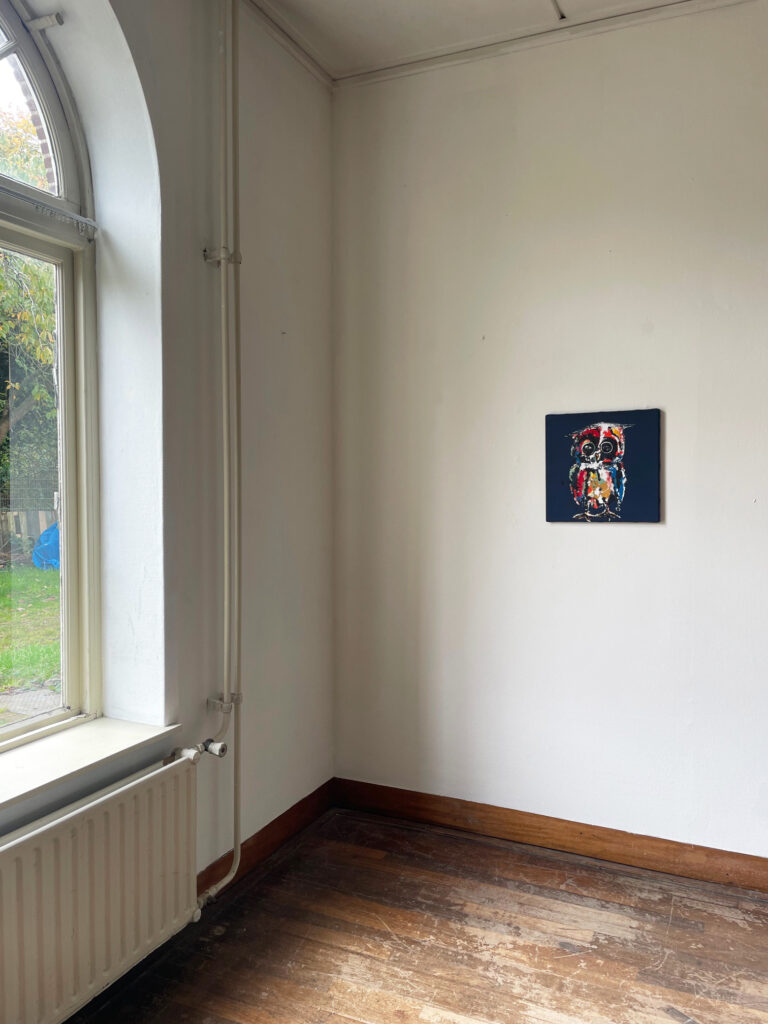 Herfst 1 I 40 x 40 I 2025 I €450Herfst 2 I 40 x 40 I 2025 I €450Herfst 3 I 40 x 40 I 2025 I €450Herfst 4 I 40 x 40 I 2025 I €450Herfst I 13 x 18 I 2025 I €275Het avondlied I 13 x 18 I 2025 I €275Blauwborst I 18 x 24 I 2025 I Sold!Studie ‘Lentelied van een roodborst’ I 10 x 10 I 2025 I €150 I Te zien bij ‘Stark in kunst’ AmersfoortTime flies / Volksliedje I 5 x 7 I 2025 I €125 I Te zien bij ‘Stark’ AmersfoortKraagje I 13 x 18 I 2025 I Sold!Keep me warm I 18 x 24 I 2025 I €300Breacking the silence -Witkop staartmees I 20 x 50 I 2025 I €550 Te zien bij ‘Stark in kunst’ AmersfoortFace chocolate I 60 x 80 2024 I €1050 Tussen de regels door I 50 x 70 I 2022 I €790On the edge I 40 x 40 I 2022 I €500 I Te zien bij ‘Stark’ in AmersfoortJuffie I 60 x 100 I €1500 I ‘Galerie Friends of Art’ in GiesenburgIt mus’t go on! I 100 x 100 2022 I €1550Life in concert I 80 x 80 I Sold!Spreeuw-en-regen I 50 x 60 I €690Roek I 50×60 I 2021 I €560Het boek is uit, roodborsttapuit I 50 x 60 I 2023 I €690Indian robin I 50 x 60 I 2024 I €690Oranje boven I 20 x 20 I 2022 I €250 Red canary on an old olive stump. I had to think of ‘where does the canary come from?’ That was name related: canary islands The red canary is more orange but we quickly round it off to the shade: red. Let’s take a look at the canary outside the cage. Let me introduce you: ‘Orange above!’Rondborstig 1 I 20 x 20 Te zien bij ‘Stark in kunst’ AmersfoortSold!Rondborstig I 20 x 20 I Te zien bij ‘Stark in kunst’ AmersfoortIjsliedje I 13 x 18 2024 I €275 I Te zien bij ‘Stark in kunst’ AmersfoortVolksliedje van een roodborst I 13 x 18 2024 SOLD!Kauwtje I 18 x 24 2023 I €350 I Te zien bij ‘Stark in kunst’ AmersfoortSpr’Eeuw I 24 x 30 I 2023 I €350Freedom Jumper – Grijze roodstaart I 13 x 18 I 2023Zwaluw I 15 x 15 I 2024 I €275 I Te zien bij ‘Stark in kunst’ AmersfoortHanging – Matkopmees I 13 x 18 I 2023 I €275 I Te zien bij ‘Stark in kunst’ AmersfoortGlanskopmees I 15 x 15 I 2023 I €275 I Te zien bij ‘Stark in kunst’ AmersfoortWinterkoninkje I 15 x 15 I 2023 I €275 I Te zien bij ‘Stark in kunst’ AmersfoortVuurgoudhaantje I 15 x 15 I 2023 I €275Mus in winter I 13 x 18 I 2022 I €275 I Te zien bij ‘Stark in kunst’ AmersfoortZwarte roodstaart I 13 x 18 I 2022 I €275 I SOLD!Winterkoninkje I 13 x 18 I 2022 I €275 I Te zien bij ‘Stark in kunst’ AmersfoortNoot en bes I 20 x 20 I 2022 I €295Kleine vliegenvanger I 18 x 24 I 2023 I €375 I Te zien bij Stark in kunst AmersfoortRoodborsttapuit I 18 x 24 I 2023 I €350